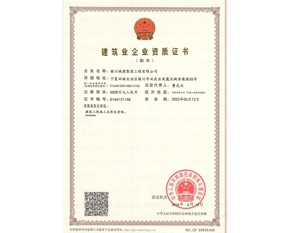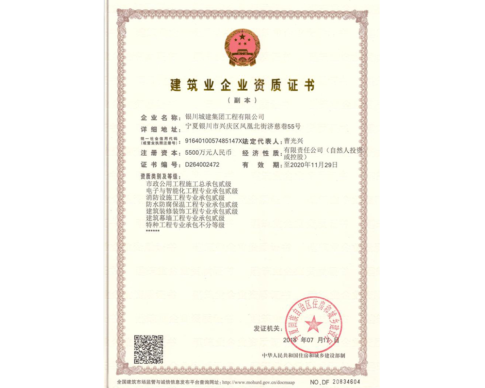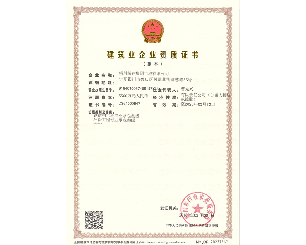 建筑業(yè)企業(yè)資質(zhì)證書(shū)—貳級(jí)(副本)