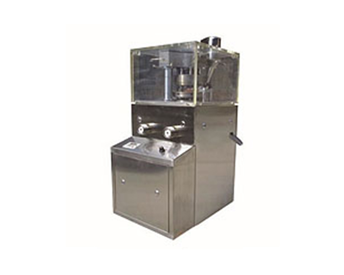 本機用以將各種顆粒狀原料壓制成圓片狀,還能壓制成各種幾何形狀的異形片。適合于小批量生產。壓片時轉盤速度、物料的充填深度,壓片厚度均可調節(jié)。機上的機械緩沖裝置可避免過載而引起的機件損壞。機體一側配有吸粉箱,通過吸咀可吸取機器運轉時產生的粉塵,避免粘結堵塞,并可回收原料重新使用。