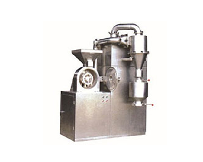 本機組主機、輔機、集管道、電控器定量加料裝置為一組。輔機有旋風(fēng)和脈沖式除塵器、主機內(nèi)裝有離心分級裝置,除可完成粉碎外,還具有分級功能,分選式離心剪切,無篩無網(wǎng),粉狀顆??扇我庹{(diào)節(jié),物料粉碎后,采用負壓輸送至排閥出口,達到制品要求,該機組是制藥、食品、化工工業(yè)的理想機械。